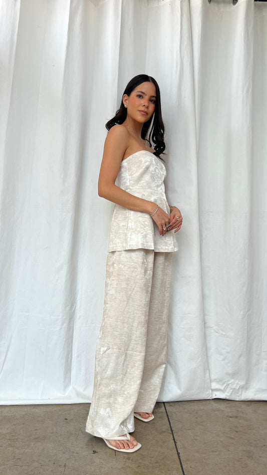 Set top strapless y falda midi yellow