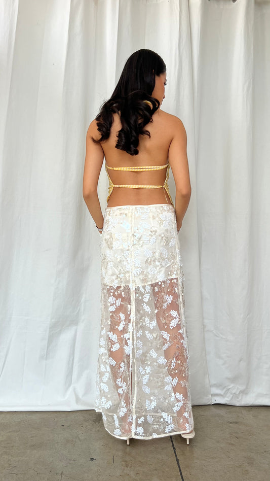 Set top halter con falda yellow