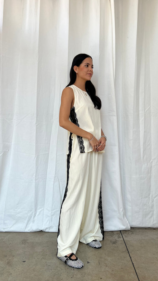 Pantalón de encaje en blanco