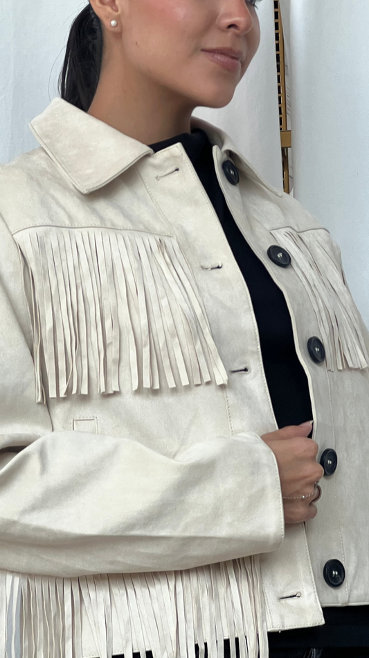 Chamarra de flecos color hueso