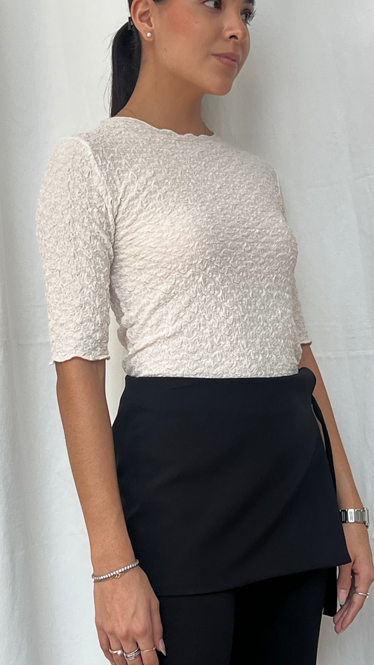 Top texturizado manga 3/4 en tono marfil