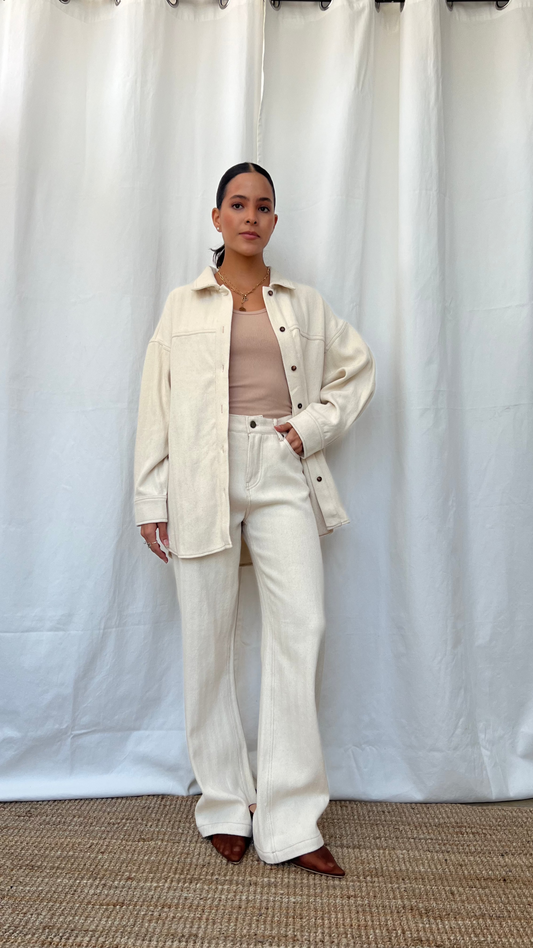 Sobre camisa tipo pana en beige