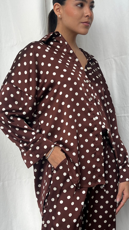 Blusa Polka Dott café y blanco