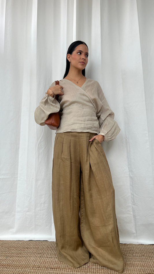 Blusa de lino cruzada en beige