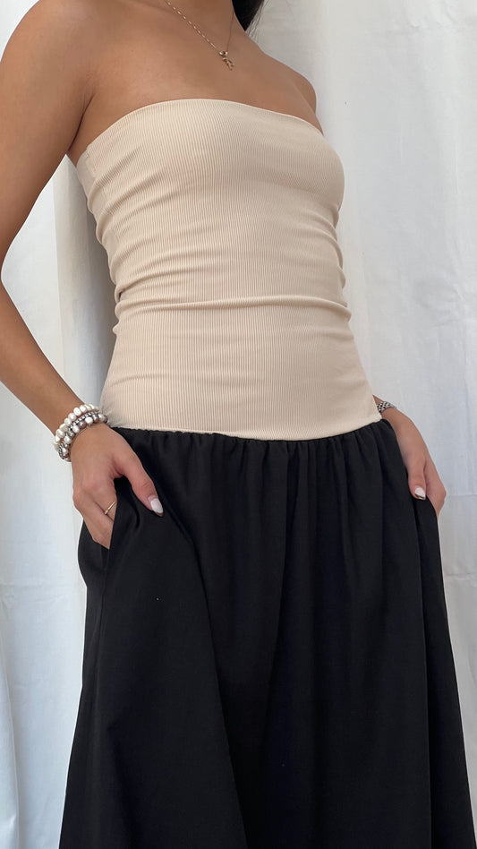 Vestido Strapless Midi Negro