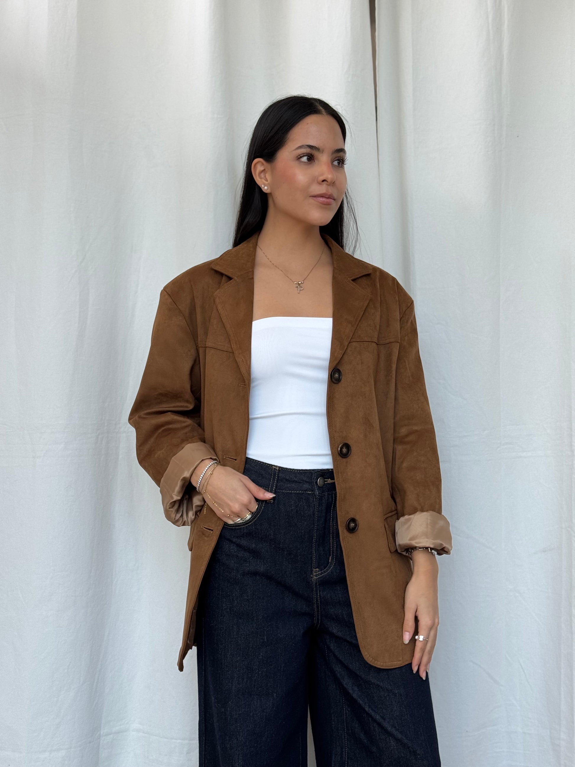 Blazer tipo gamuza caramelo