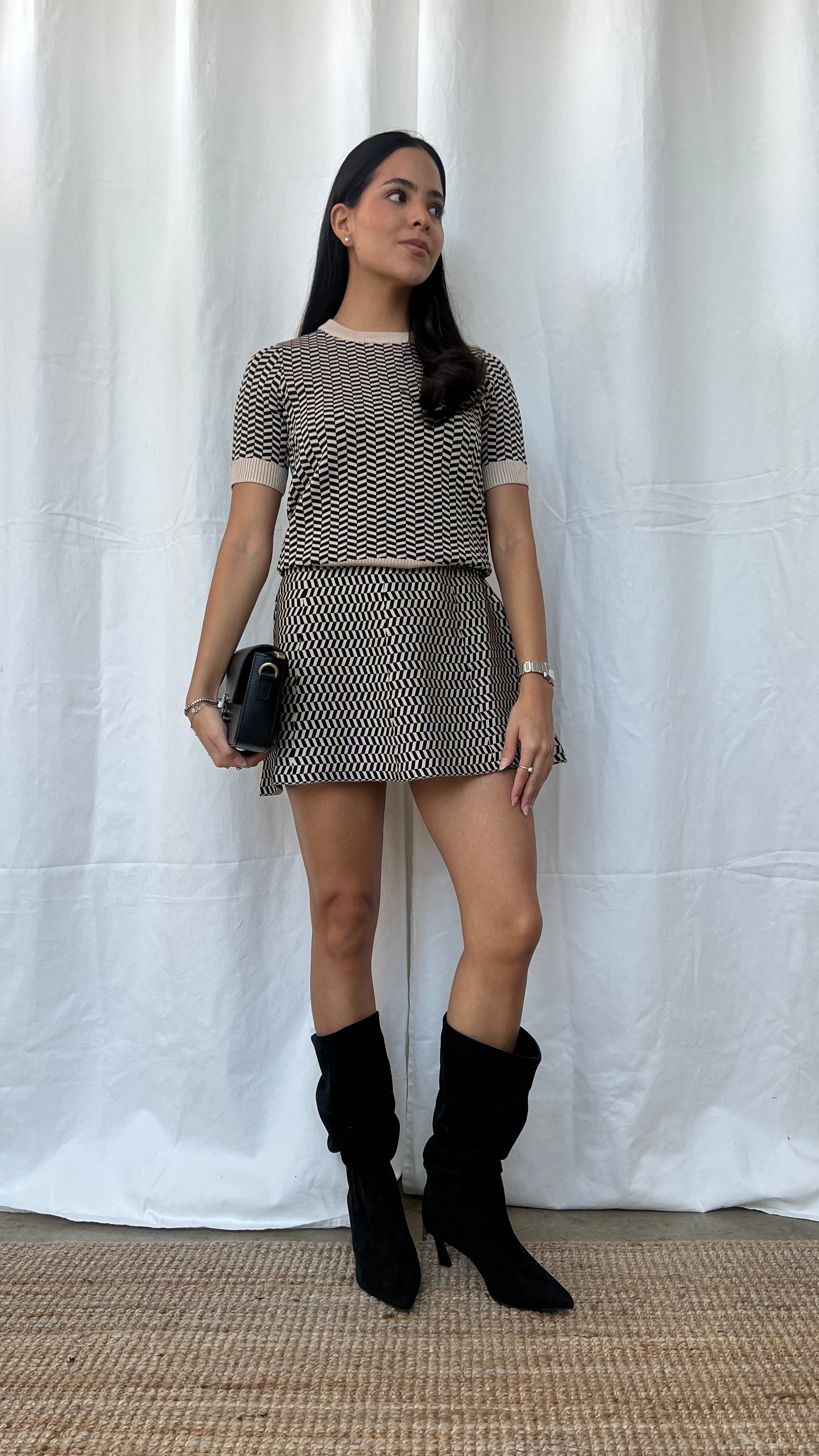 Top estampado geométrico café